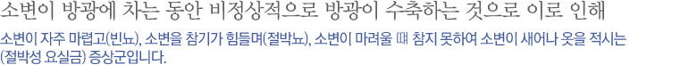 때문입니다. 방광에 소변이 찰 때까지 방광이 쉬고 있어야 하는데, 방광이 차지 않았는데도 때때로 요의를 느끼게 됩니다.